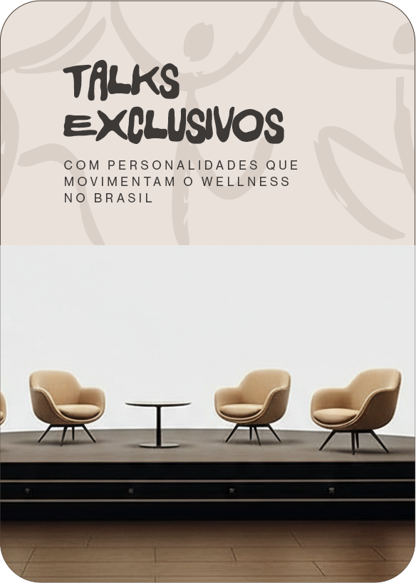 Conversas e painéis com personalidades do wellness e da performance, compartilhando experiências, ciência e inspiração.